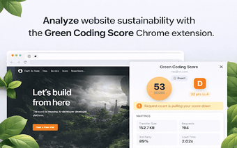 Green Coding Score är en kostnadsfri Chrome-tillägg som automatiskt mäter och visar en hållbarhetspoäng för webbplatser. Med poäng mellanger det användare och utvecklare insikter om webbplatsers miljöpåverkan. Tillägget analyserar varje webbplats du besöker och ger omedelbar feedback om dess hållbarhet genom en betygsskala från A till E. Dessutom tillhandahåller det detaljerade metrik som överföringsstorlek, begärningsantal, och laddningstid, vilket gör det lättare att förstå och optimera webbplatser för en grönare framtid.